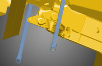Rock ejector brackets and ejector bars remove rocks stuck between the rear dual tires.